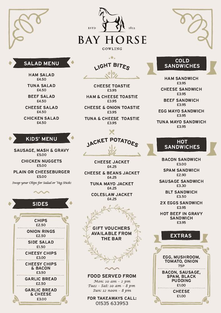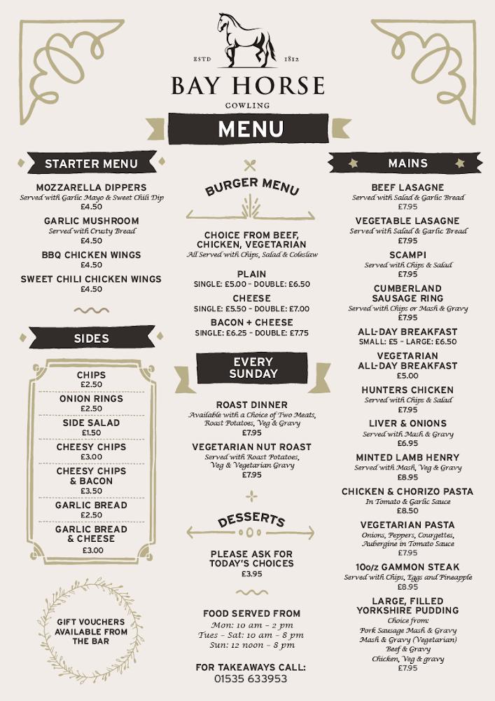 Located at 161 Keighley Rd, Cowling, the Bay Horse is easily accessible and invites you to experience the charm of rural North Yorkshire. This dog-friendly pub excels in creating a casual and cozy atmosphere that welcomes travelers, locals, and pets alike. The surrounding countryside enhances its appeal, presenting breathtaking views ideal for scenic walks. Cowling itself is a quaint village with rich history and friendly residents, which complements the pub's inviting vibe. Dan and Gemma prioritize community and hospitality, ensuring a heartfelt experience mirrored in their service. The pub operates every day of the week, providing a reliable spot for both midday meals and evening relaxation. With amenities like outdoor seating, free Wi-Fi, and a pool table, visitors can unwind while enjoying a great selection of ales and hearty dishes. The Bay Horse fosters a sense of community where neighbors gather and newcomers feel immediately at ease. This welcoming environment makes it a central hub for festive gatherings and casual outings. Guests frequently share stories and laughter, encapsulating the spirit of the Bay Horse and its place in Cowling's local culture.